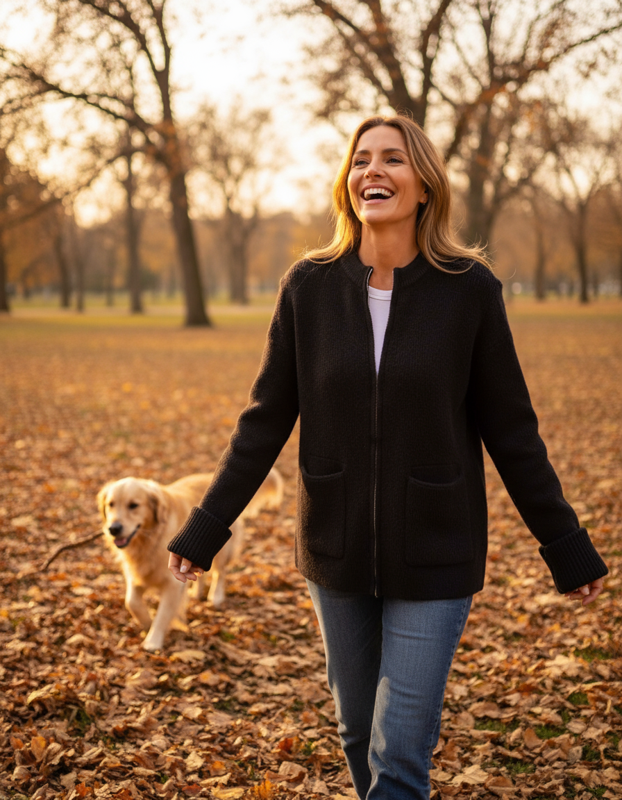 Van rustige ochtenden tot avondjes uit: Almira - Herfst vest past zich moeiteloos aan ieder moment aan. Lichtgewicht maar toch behaaglijk, het is meer dan een vest – het is een onmisbaar kledingstuk dat warmte, stijl en gemak toevoegt aan je dagelijkse look.